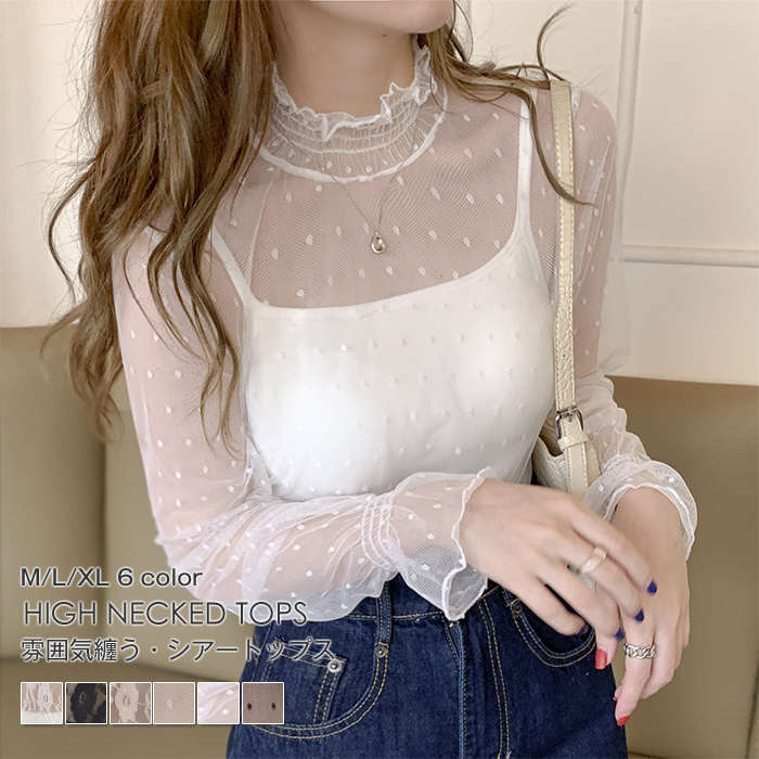 トップス 透け感 レース ブラウス シアー レディース ハイネック 立ち襟 長袖 シースルー インナー 春 夏 秋 レイヤード Tシャツ カットソー シアートップス UVカット セクシー おしゃれ き