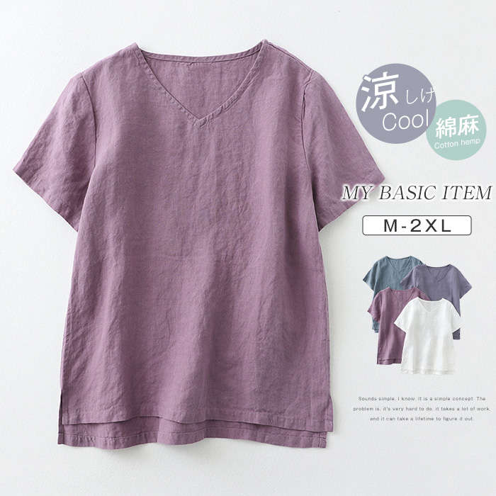 T-shirt 季節感up~ リネン風 半袖Tシャツ 大きいサイズ ブルー パーブル ホワイト グレー デート 夏 春 20代 30代 40代 50代 プレゼント 贈り物 ギフト 誕生日 母の日 ♪