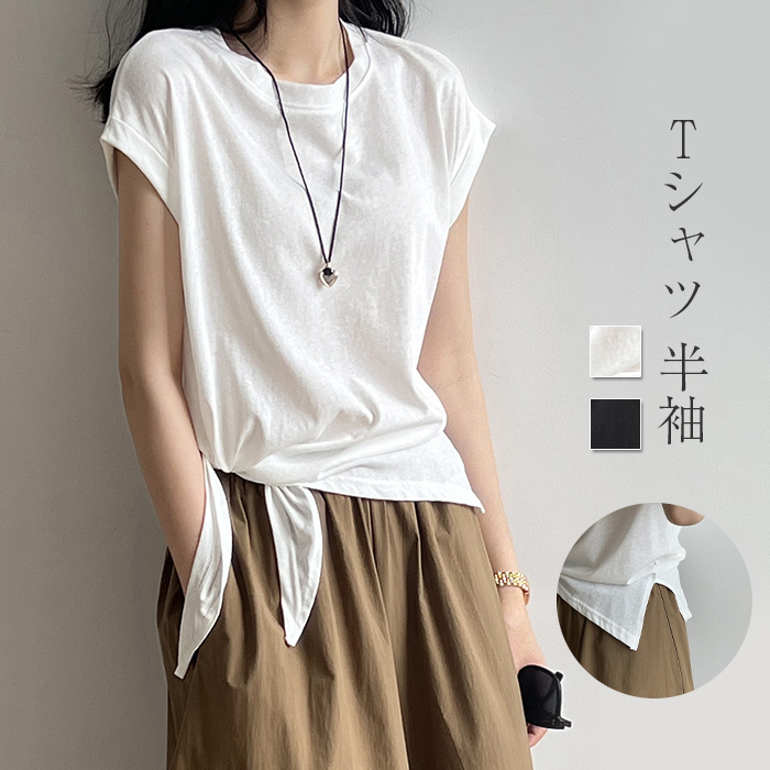 Tシャツ レディース フレンチスリーブ 半袖 tシャツ 白Tシャツ カットソー トップス 夏 春 春夏 プルオーバー 大きいサイズ 体型カバー 無地 シンプル ゆったり クルーネック フレンチ カジュ