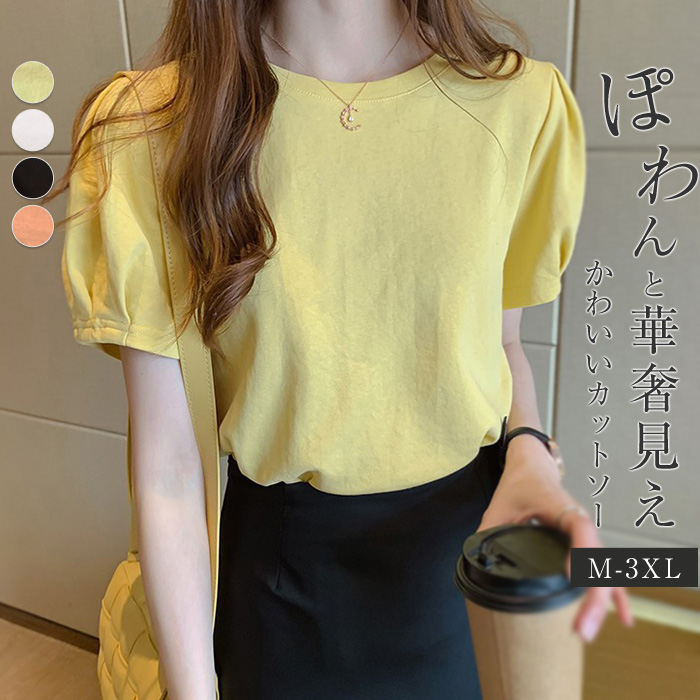 大人気ほどよい甘さの袖 シャツ カットソー レディース 春夏 半袖 フリル 無地 ギャザー シンプル