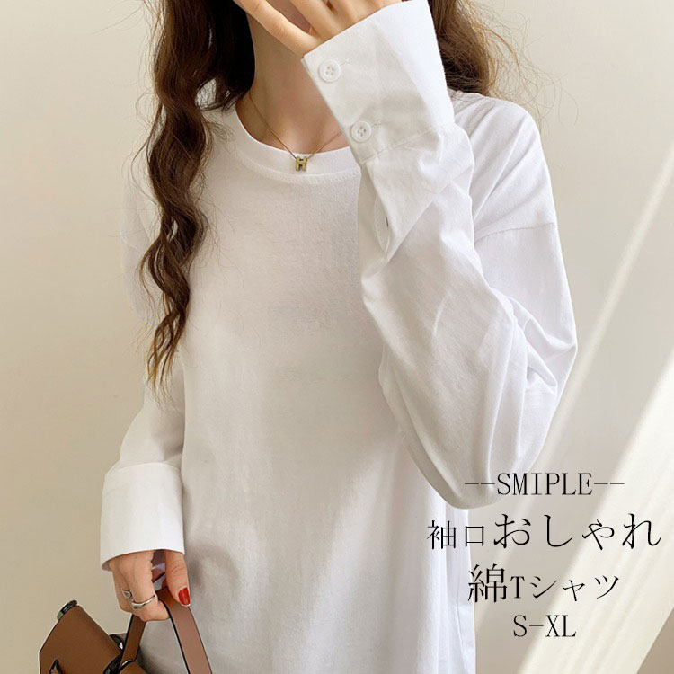 ホワイトロングtシャツ シンプルなのにおしゃれ 抜け感があるシルエットが魅力のチュニックロンT レディースファッション トップス Tシャツ カットソー