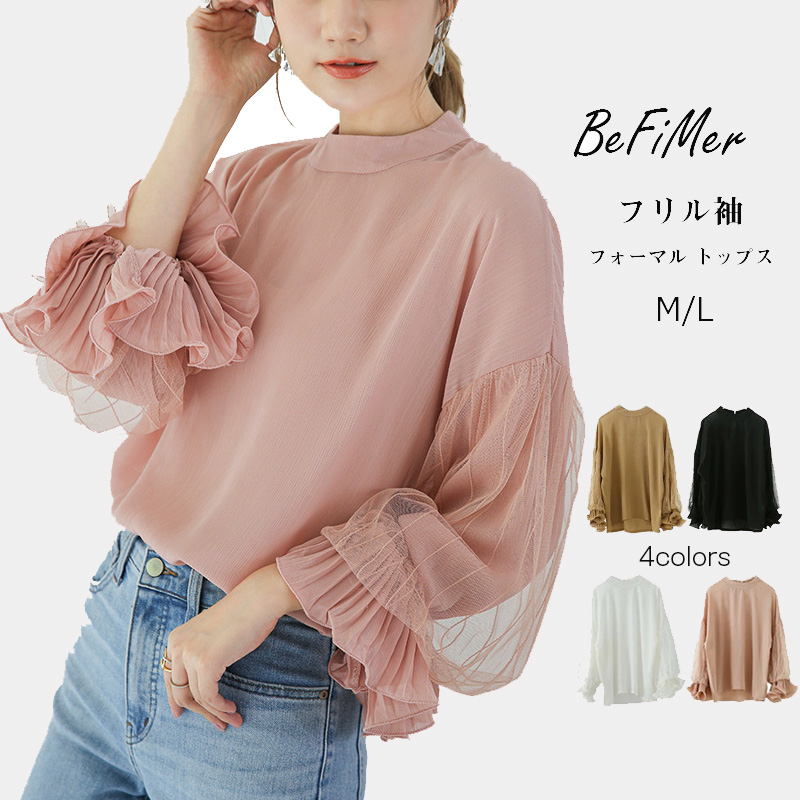 シフォンブラウス シアーブラウス ボリューム袖