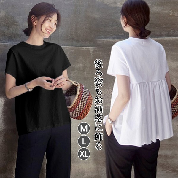 バックフリルカットソー バックフリル トップス ギャザー 後ろ 半袖 無地 シャツレディースファッション トップス シャツ カットソー