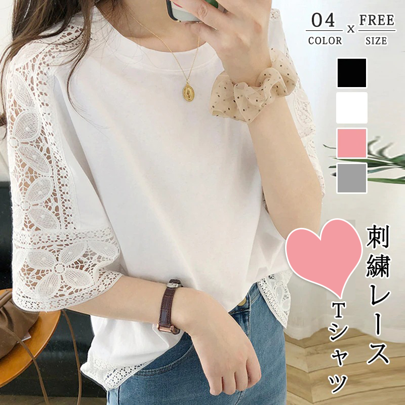 ブラウス 柔らかく涼しいレースブラウス 可愛い 夏服 年齢にこだわりなく幅広く着られるレーストップス レース刺繍トップス 低身長 汗染み防止 オーバーサイズ 可愛い おしゃれ