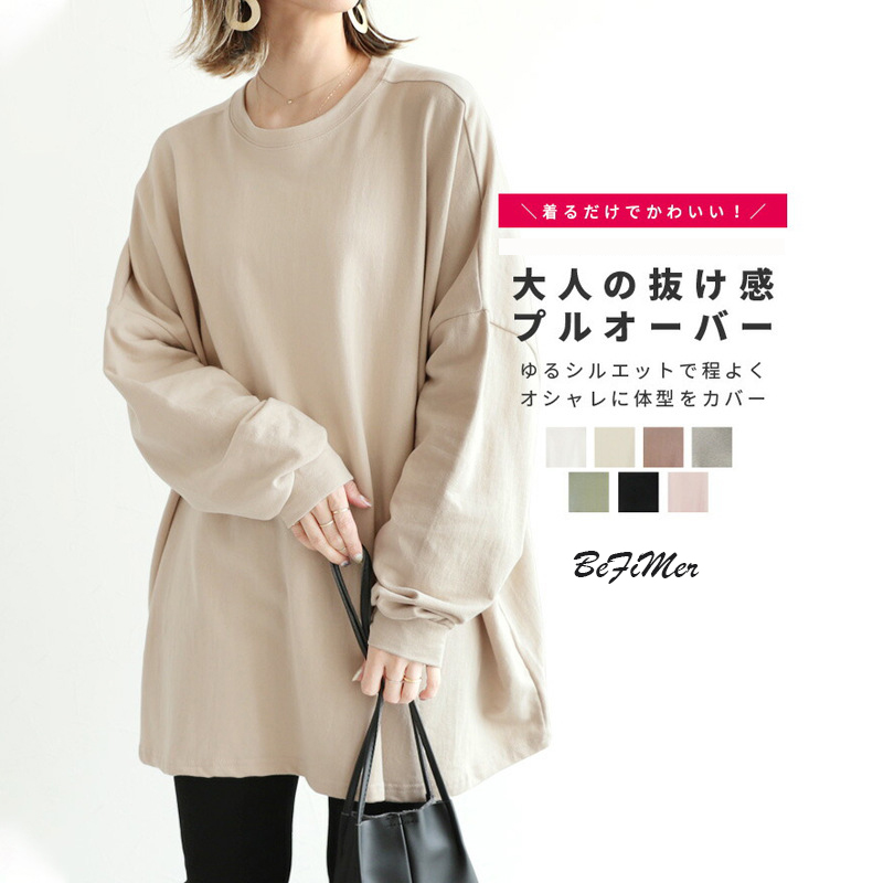 気質 無地 通学 通勤 お洒落 着痩せ きれいめ 体型カバー 女性 気質 ゆったり 無地 シンプル カジュアル 通学 通勤 体型カバー