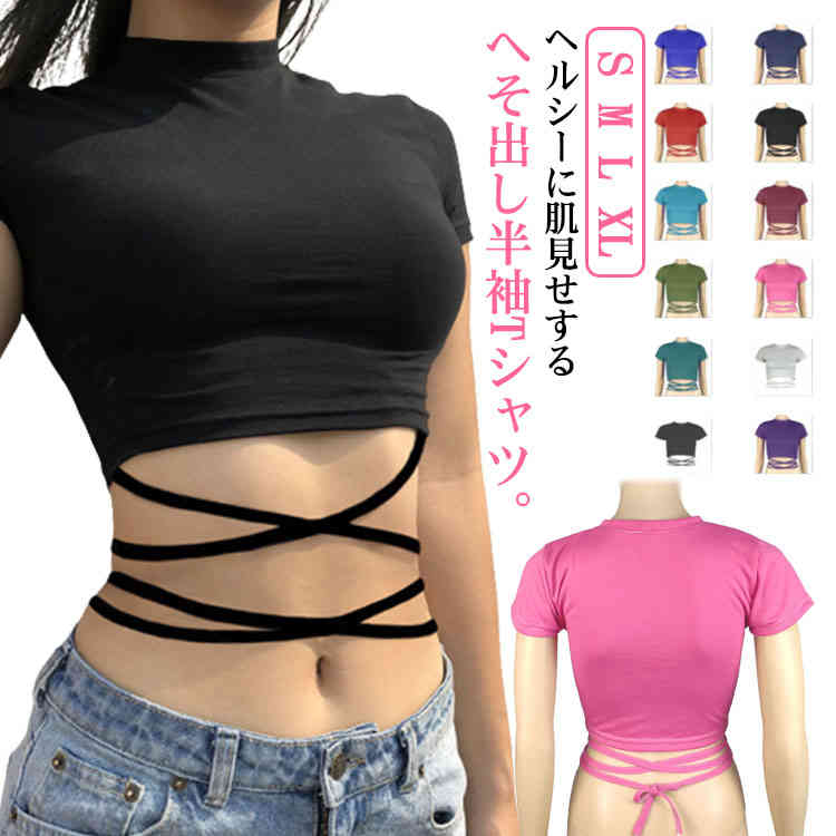 へそ出し ヘソ出し ショート丈 トップス 紐 クロス ヒップホップ ダンス 衣装 ダンス衣装レディースファッション トップス Tシャツ カットソー