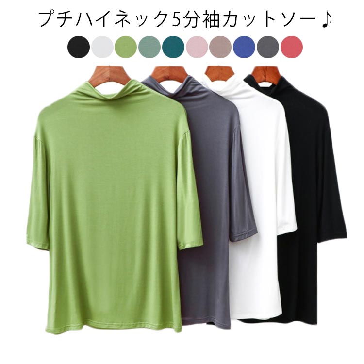 プチハイネック Tシャツ 5分袖 トップス 夏服 冷感 UVケア 紫外線対策 春夏 シンプル トップス 春秋 インナー