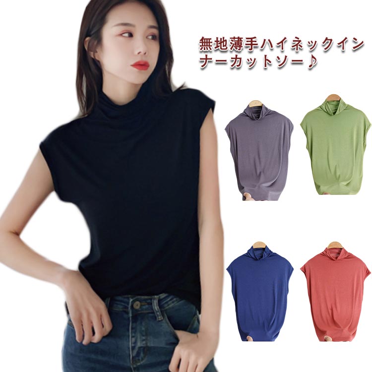 首元をおしゃれに隠してくれる タートルネック ひんやり カットソー インナー シャツ 袖なし トップス 極薄