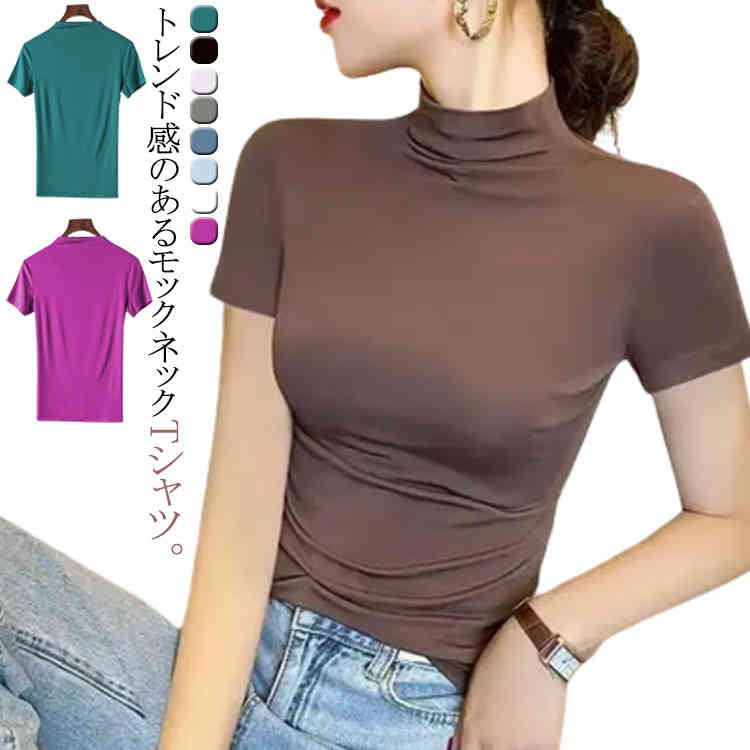 首元を守ってくれるハーフネックシャツ 半袖シャツ カットソー カジュアル タイトレディースファッション トップス シャツ カットソー