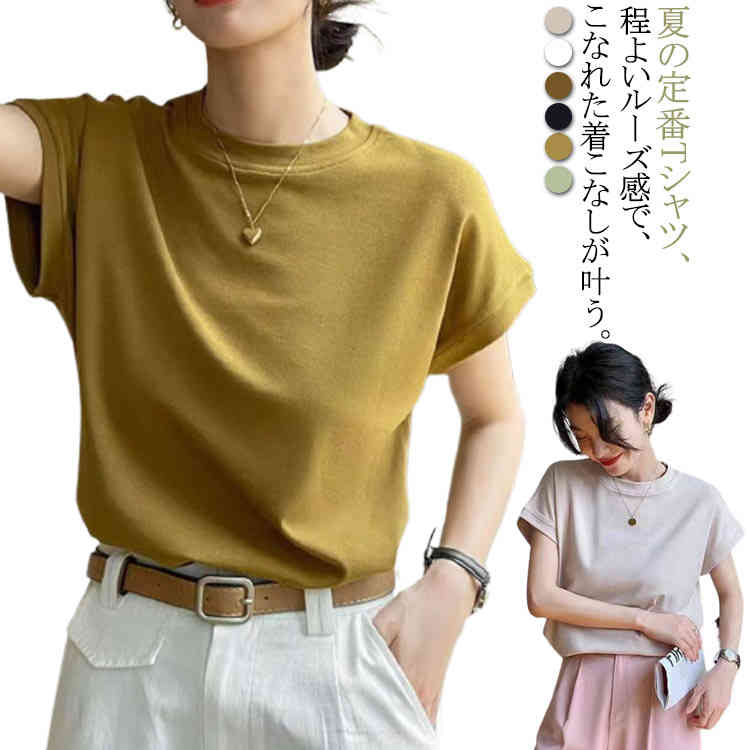 二の腕を撃退♪ スッキリシルエットながら気になる部分をカバー 半袖Tシャツ 夏服 フレンチスリーブレディースファッション トップス Tシャツ カットソー