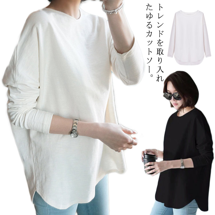 長袖 tシャツ レディース ロンT カットソー カジュアル シンプル 極上な着心地 小顔効果 ふんわり柔らかい 伸縮 着回し抜群 大人カジュアル OL 通勤 通学