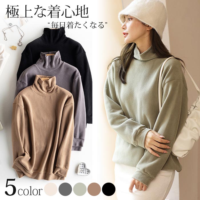 無地 シンプルなフリース レディースフリース タートルカットソー 長袖 レディース タートルネック 極上な着心地 ゆるっとしたタートル襟 タートルネックカットソー