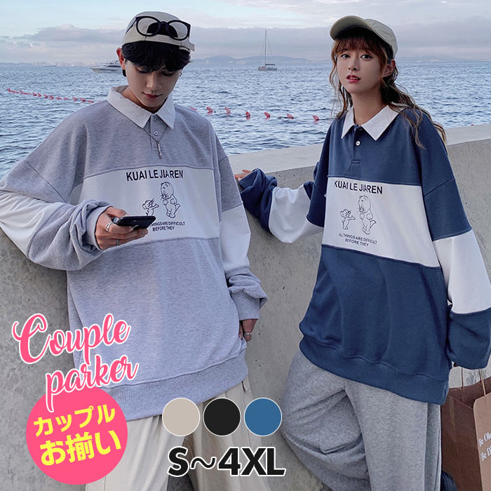 ペアルック 秋 カップル プルオーバートップス スウェットトレーナー ストレッチポロシャツ 無地 オシャレ お洒落 ゆったり ゴルフシャツ カジュアル