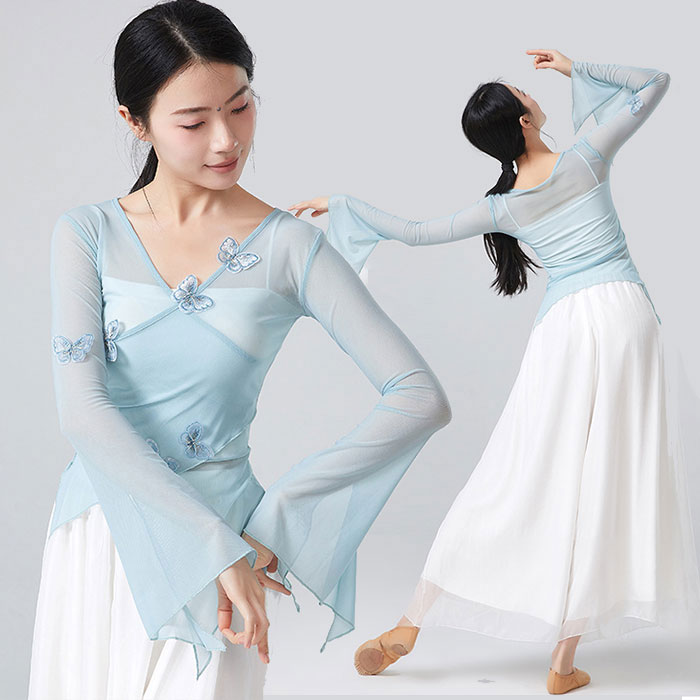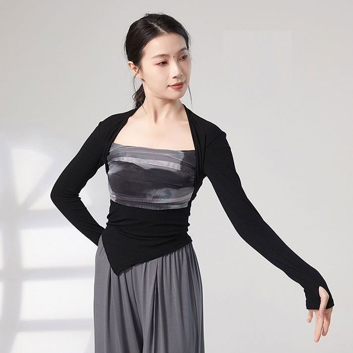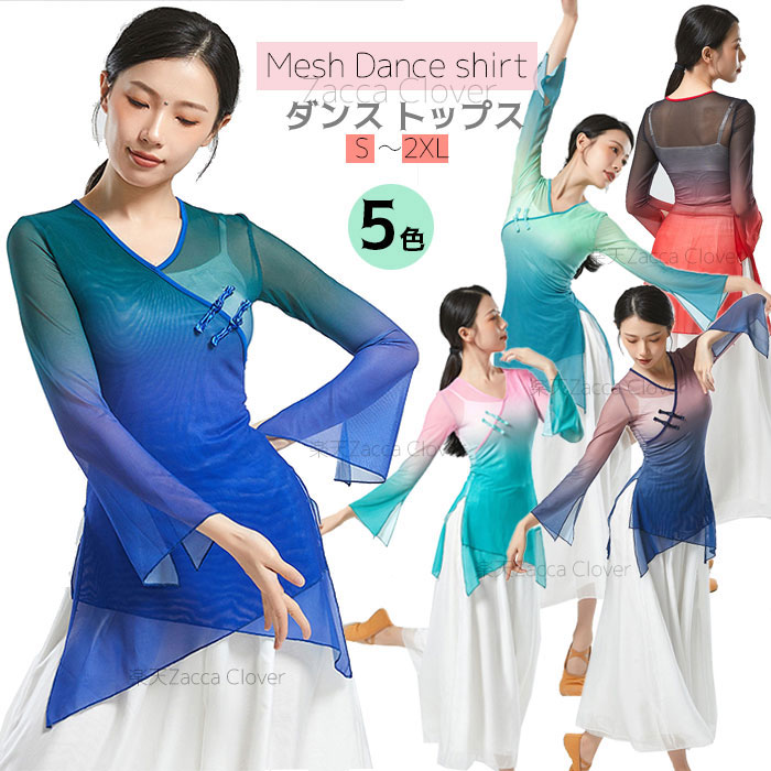 ダンストップス 長袖 透け感 トップス レッスンウェア ダンス着 バレエ レッスン着 ダンストップス