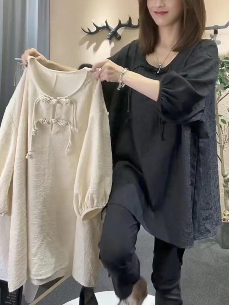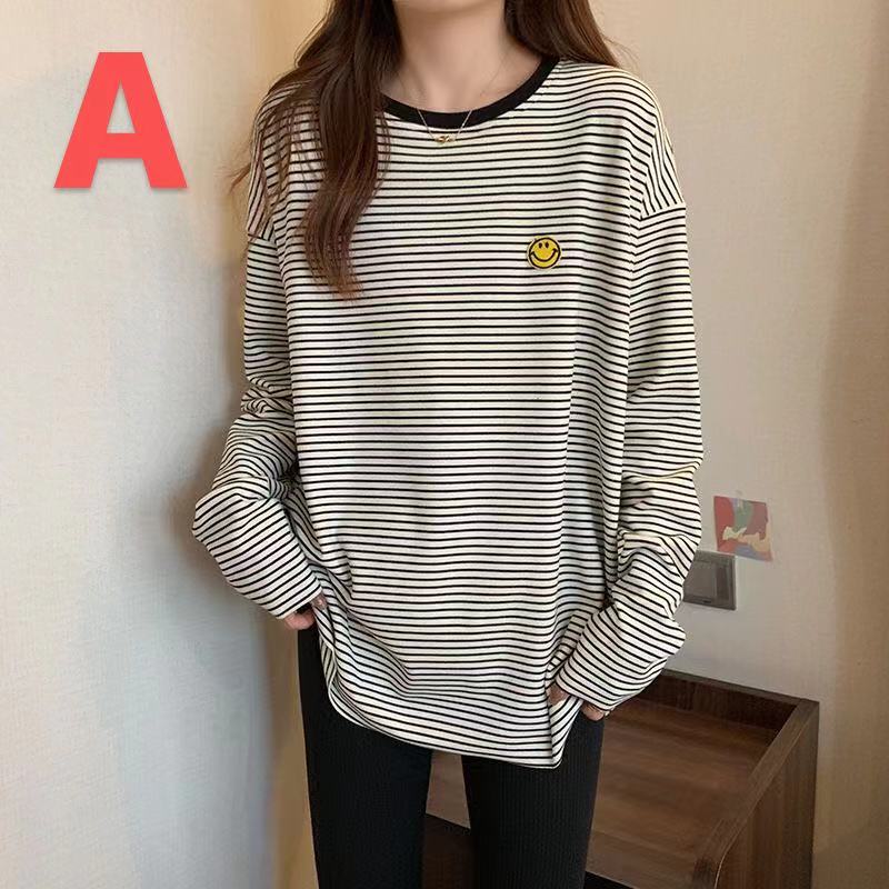 レディース トップス シャツ 春秋 カジュアル 丸首 ゆったり 可愛い 大きいサイズ 長袖 307
