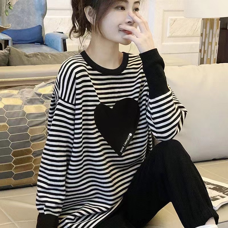 ロングシャツ レディース 大きいサイズ ボーダー柄 ボーダーシャツ 春秋 秋服 春服 長袖 薄手 丸首 トップス ゆったり 可愛い カジュアル 245