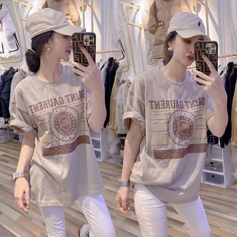 レディース Tシャツ 春夏秋 ゆったり トップス 半袖 英文字 薄手 丸首 可愛い カジュアル カーキ ブラック M L XL 2XL SLUA106