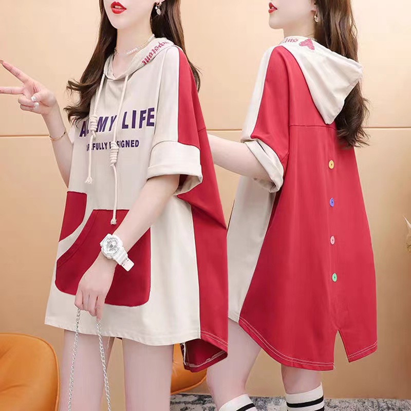 tシャツ パーカー フード付き レディース 半袖 半袖tシャツ ゆったり 切り替えレディースファッション トップス Tシャツ カットソー