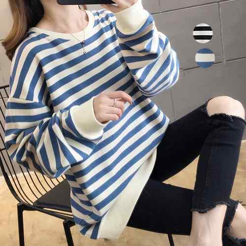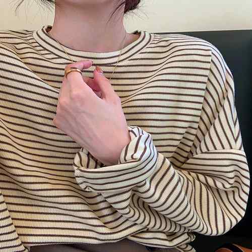 レディース カラーボーダー ロン ラウンドネック おしゃれ レトロシャツ クルーネック プルオーバー 大人カジュアル 韓国ファッション秋 シャツ配色着やせ バイカラートップス