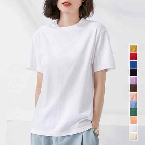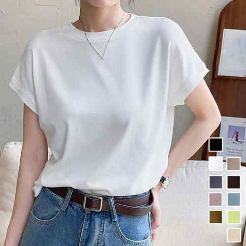 無地Tシャツ レディース オフィスコーデ カジュアル フリーサイズトップス クルーネック プルオーバー ベーシック 半袖 カットソー大人女性 大人通勤 tシャツ