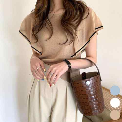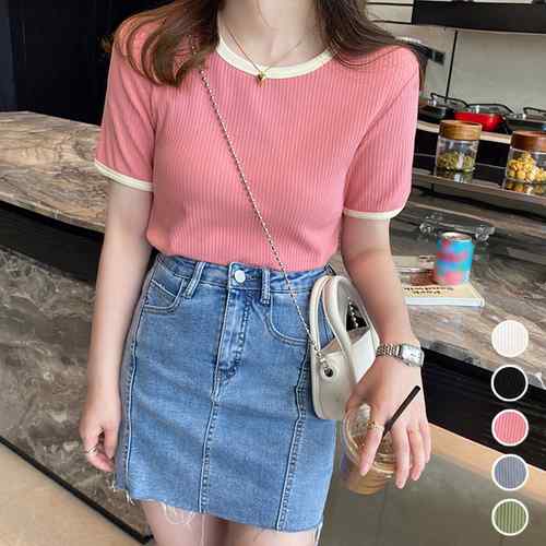 パイピング ラウンドネック 無地 韓国ファッション プルオーバー 着やせ シャツ カジュアル トップス 夏服 夏 カットソー 丈短め ガーリー 丸首シャツ可愛い