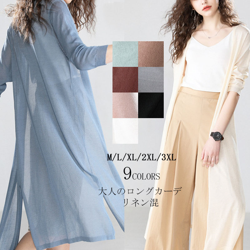 冷房対策にも♪UV対策にも 夏カーディガン ロング 無地 長袖 体型カバー UV対策 春 夏 M L XL 2XL 3XL