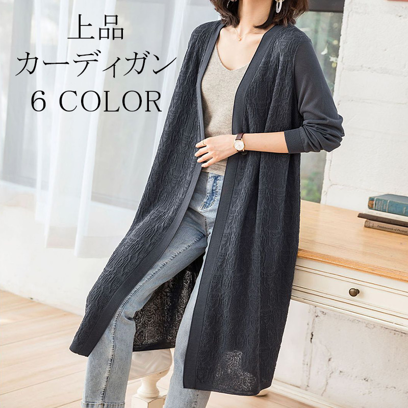 ロングカーディガン レディース カーディガン 薄い 透かし Vネック リブ スリット ロングカーディガン 長袖 おしゃれ フォーマル 通勤 仕事 事務所 ベーシックカラー