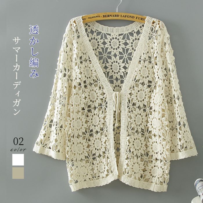 サマーカーディガン レディース レース ショート丈 涼やか 透かし編み レイヤード トップス コーデ 大人可愛い ゆったり 20代 30代40代