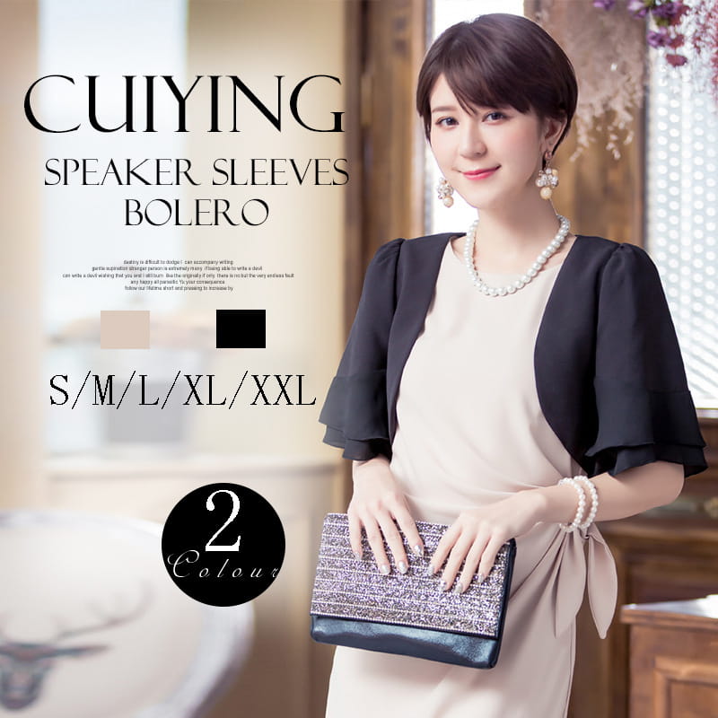 結婚式 ボレロ パーティードレス ジャケット 大きいサイズ 体型カバー お呼ばれ 二次会 上品 フレアスリーブ レディース 20代 30代 40代 ワンピース ノーカラー 試着 大人 フォーマル 成人
