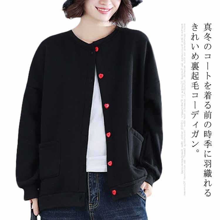 きれいめ裏起毛コーディガン 暖かい 暖かい 長袖 クルーネック アウター コート 秋冬レディースファッション トップス カーディガン ボレロ