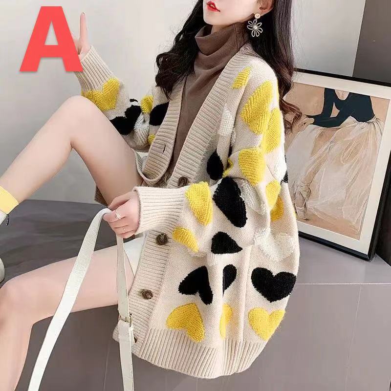 カーディガン レディース 秋 冬 前開き ハート柄 カーディガン 厚手 セーターレディースファッション トップス カーディガン ボレロ