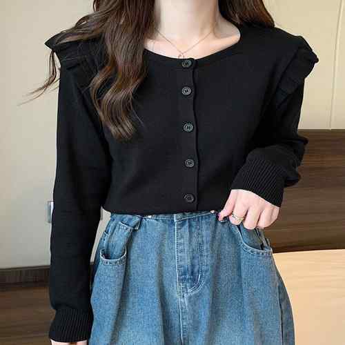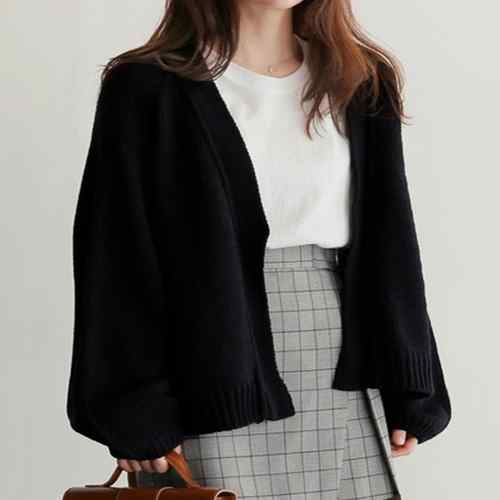 レディーストップス 長袖カーデ 無地セーター 羽織り シンプルアウター オフィスカジュアル 通勤通学 オシャレ服 体型カバーニット黒 フェミニンカーデ ゆったり韓国ニット