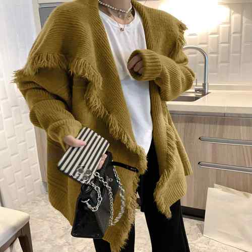 レディーストップス ゆったり 長袖 ミドル丈 体型カバー 暖かいアウター カジュアル 通勤通学 おしゃれ きれいめ服 ニットカーディガン 大人女性秋コーデ 無地 韓国カーデ