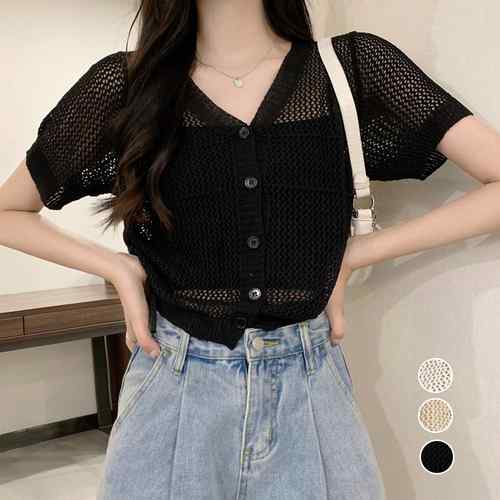 レディース かわいい サマーカーディガン 韓国風 着やせ 透かしトップス 無地 薄手 Vネック サマーニットトップス 夏 肌見せカーディガン シアーニットトップ 前開き透け感ニット