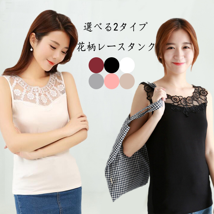 レースタンクトップタンクトップレディースシースルーノースリーブレースネックUネックレースインナー花柄レースキャミソールインナータンクトップレースUネックレース刺繍 通年