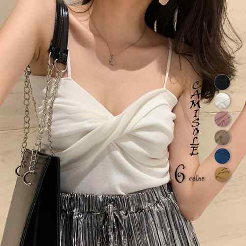 キャミトップ セクシー vネック キャミ シンプル 無地サマーニット ベーシック 重ね着インナー ニットキャミソール春夏 ビスチェ ニット 細肩紐キャミソール 韓国風20代30代