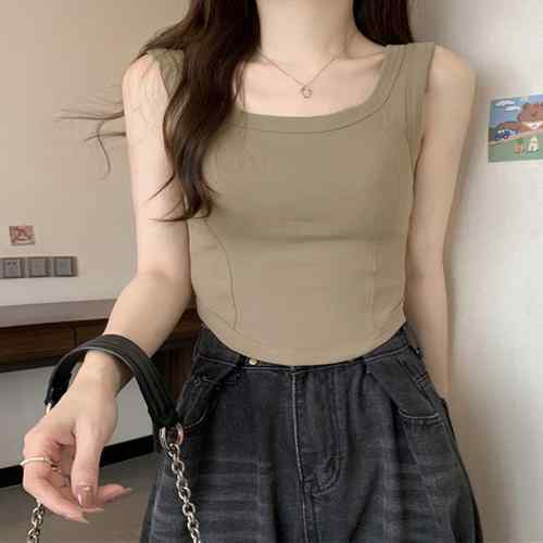 トップス クロップド丈 インナー きれいめ フリンジ レトロ カジュアル 背中見せ カップ付き ノースリーブ セクシー シャーリングキャミ 韓国風 トップス フレンチ 肌見せ