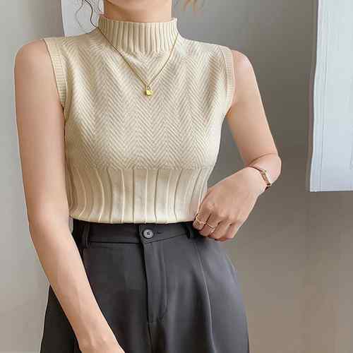 サマーニット レディース ニットタンクトップ プチハイネック シンプル 重ね着インナー ボトルネックニット 着やせ 無地 キレイめニット春夏 韓国ニット新作人気 オフィスカジュアル