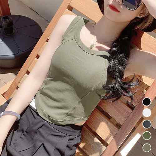 レディース ラウンドヘム インナートップス セクシー ちびタンクトップ 可愛い ダンス衣装 おしゃれ夏服ブラ付きインナー Uネックタンク無地 短丈 タンクトップ 見せインナー重ね着