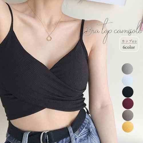 ブラキャミ ブラトップ トップス へそ出しキャミ ボタン セクシー 肌着 無地 カジュアル 胸元 大人 おしゃれ インナートップス ショート丈トップス 見せインナー 夏服