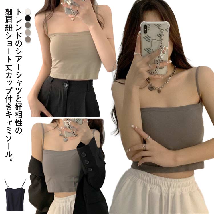 暑い夏も快適 細肩紐ショート丈カップ付きインナー ベアトップ風 キャミソールレディースファッション トップス キャミソール