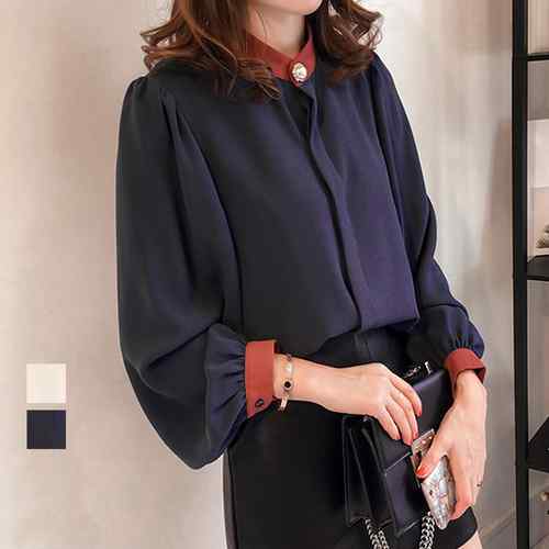バルーンスリーブ ブラウス レディース シャツ ブラウス オフィス スタンドカラー ブラウス フォーマル トップス クラシカル バルーン袖ブラウス ブラウス 長袖