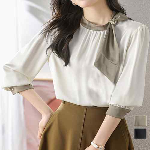 シアースリーブ ドッキングシャツ ボウタイシャツブラウス