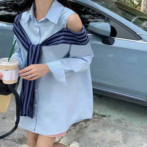 肩開きカットアウトシャツ レディース オープンショルダー 長袖シャツ ビッグシャツカーディガン 韓国風 体型カバー着やせ ルーズシャツお洒落 肩掛け風 トップス チュニックブラウス