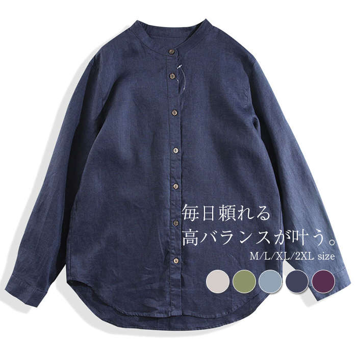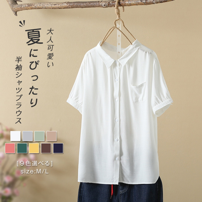 シンプルで落ち着いたデザインの綿麻シャツ 肌触りの良い綿麻の素材で暑い季節も快適 レディースファッション トップス シャツ ブラウス