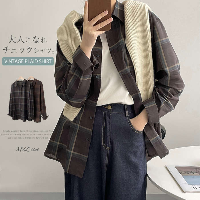 シャツ ブラウス レディース 長袖 チェック柄 トップス 綿100% コットン100% 前開き オフェス フォーマル きれいめ カーディガン お洒落 大人 レイヤード風 重ね着風 ショート丈 とろみ