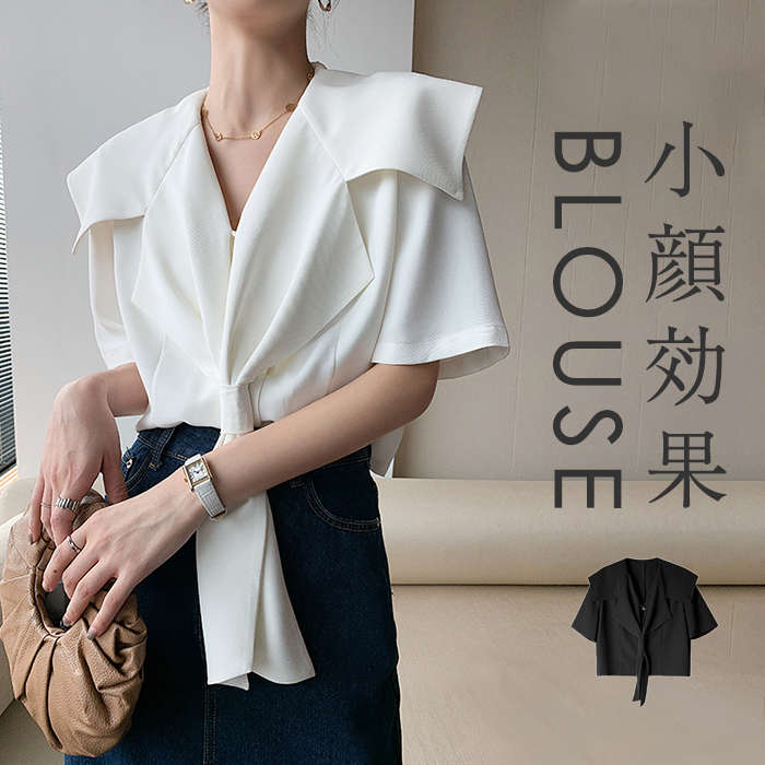 ブラウス 半袖シャツ レディース トップス シャツ インナー 白シャツ スーツインナー ビジネススーツ 春 夏 五分袖 半袖 オーペンカラー ネック ボウタイ 小顔効果 体型カバー オフィスカジュア
