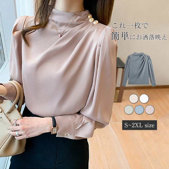一枚で女っぽく仕上がるブラウス 首元のタック使いで上品な印象を醸し、華やかな印象に レディースファッション トップス シャツ ブラウス
