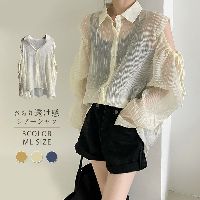 Sheer shirt 春夏新品シアーシャツ 着回し 万能ブラウス ♪レディースファッション トップス シャツ ブラウス