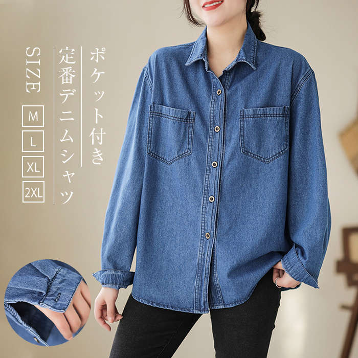 コットン素材のデニムシャツ 流行に左右されず定番で愛用できるベーシックデザインです レディースファッション トップス シャツ ブラウス